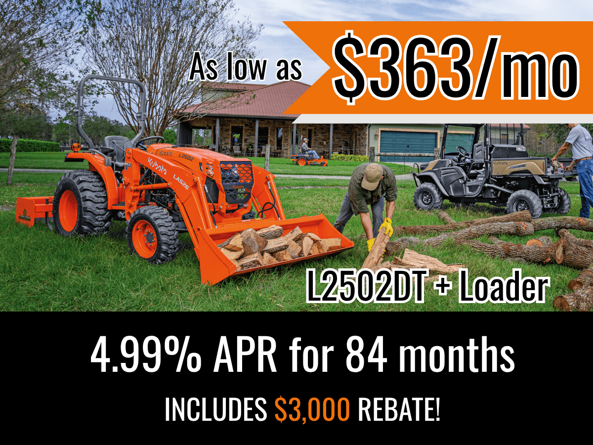 TAKE ADVANTAGE OF OUR EXCLUSIVE OFFERS ON SELECT KUBOTA PRODUCTS.