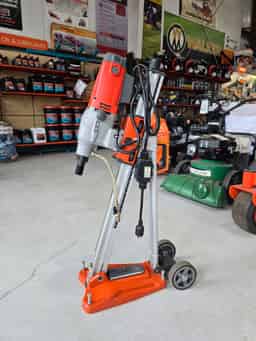 DMS 240 is an electric drill motor and stand system for a wide variety of core drilling applications. An ideal system for medium core drilling in walls, floors and roofs up to 10 in. diameter. The stand is easy to tilt, and the back support provides reliable and stable angle drilling, saving you setup time and body stress. This system can be used for ventilation, plumbing waste evacuation pipes, barriers and road signs.